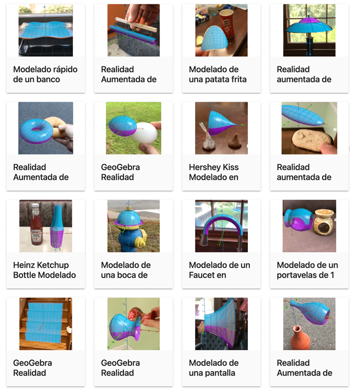 Recomendamos ingresar al libro GeoGebra del profesor Tim Brzezinski (https://www.geogebra.org/m/RKYFdQJy) donde él muestra algunas ideas que podemos trabajar con nuestros estudiantes para modelar objetos reales utilizando la realidad aumentada.
